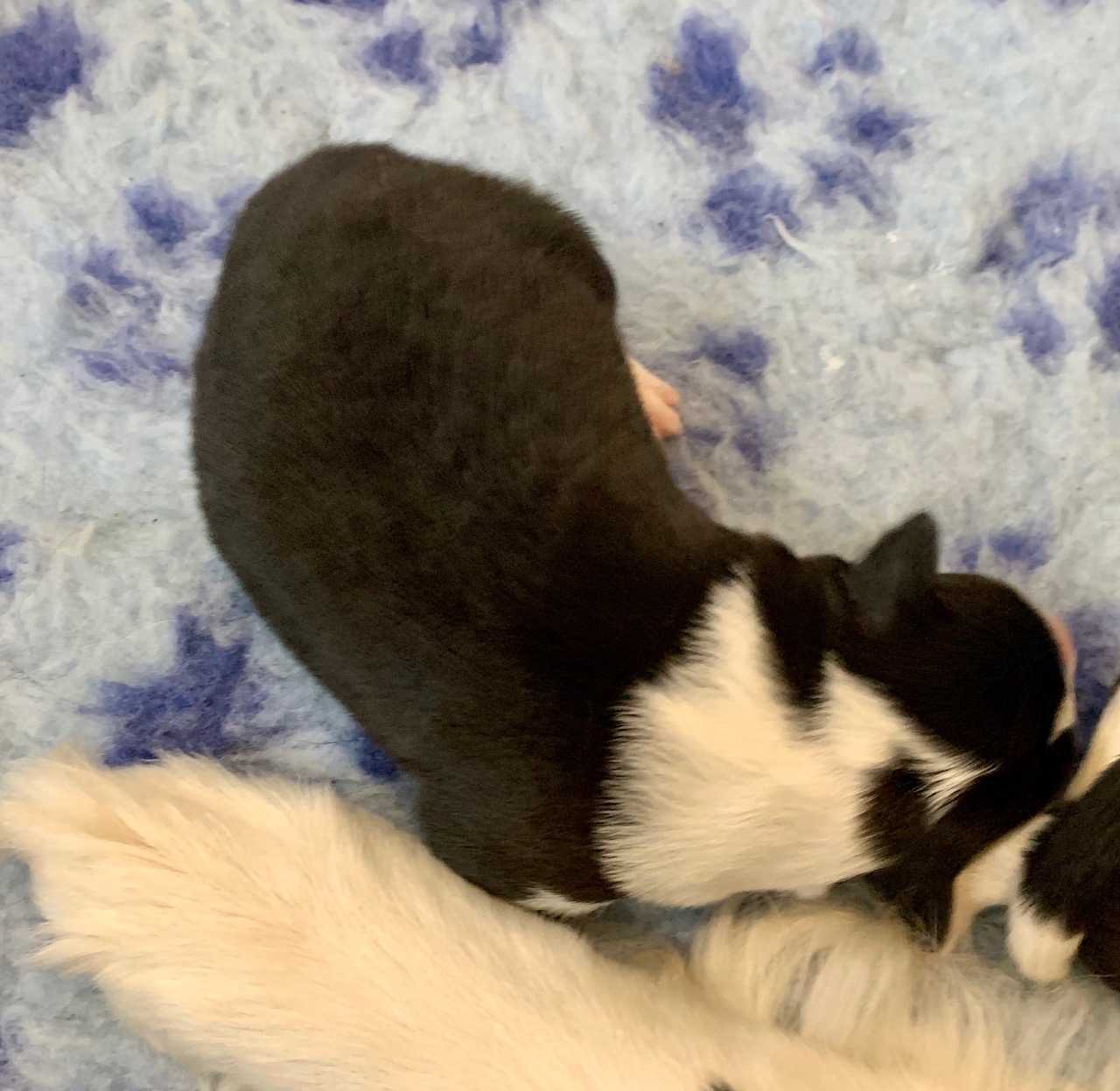 Dante wyróżnia się spośród braci większa ilością czarnego koloru na głowie. Ma tylko cieniutką kreseczkę na kufie, dwa czarne zygzaki na białej kryzie, to piękne wymalowanie w zupełnie innym stylu.
